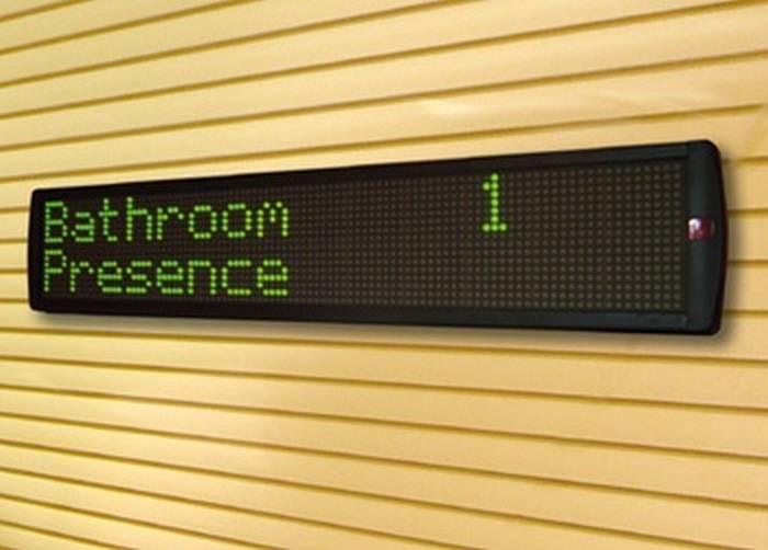 Die Abmessungen der Anzeige betragen 800 x 160 x 80 mm (BxHxT), dies sind ideale Voraussetzungen zum Einsatz in lagen Korridoren, Schwesterzimmern, Personalräumen bis hin zu Dienstbüros.