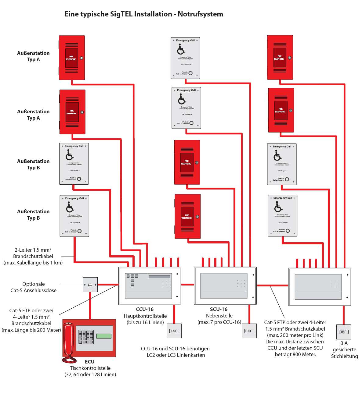 ein fest verdrahtetes Notruf-Telefonsystem, welches der Feuerwehr und